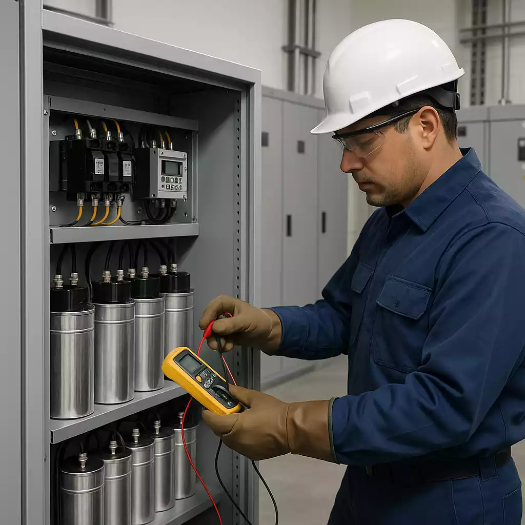 Un banco de condensadores automático corrige de forma inteligente el factor de potencia en tiempo real, ayudando a reducir las penalidades por consumo de energía reactiva que impone la distribuidora eléctrica.